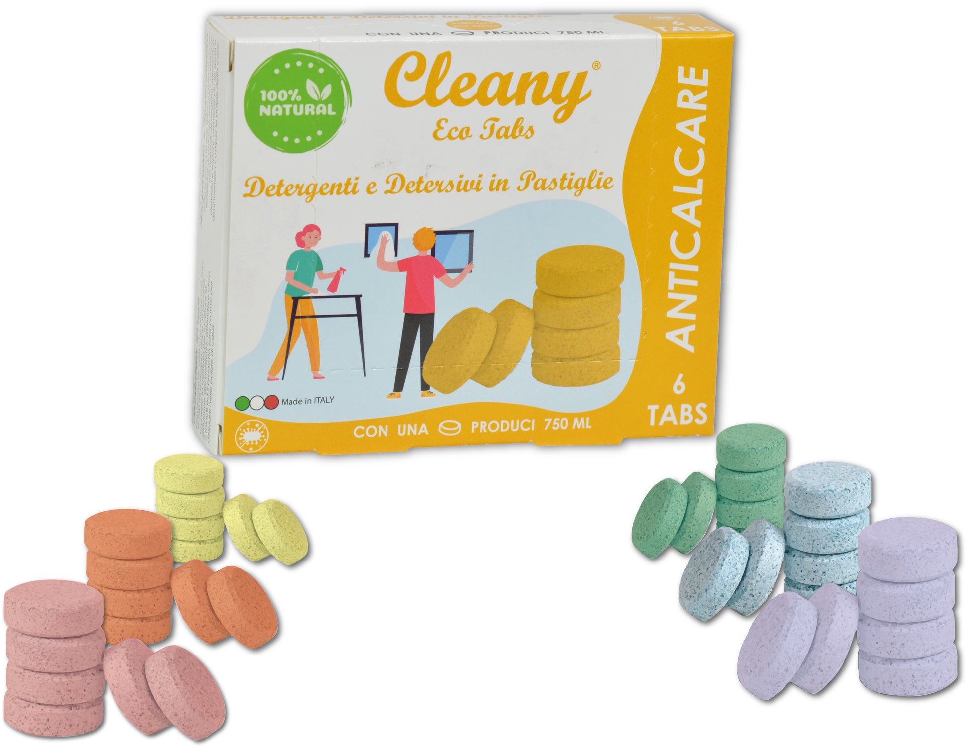 Tutta la gamma Eco Tabs annulla qualsiasi emissione di sostanze tossiche contenute nei normali detergenti, sgrassatori, detersivi e saponi, ottimizzando gli spazi e diminuendo i costi per le pulizie della casa.